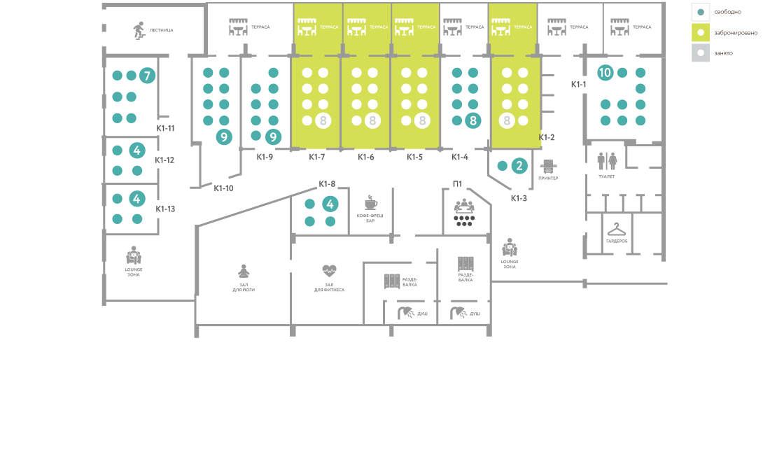 | Этаж на 258 рабочих мест в сервисном офисе "Практик Охта" |